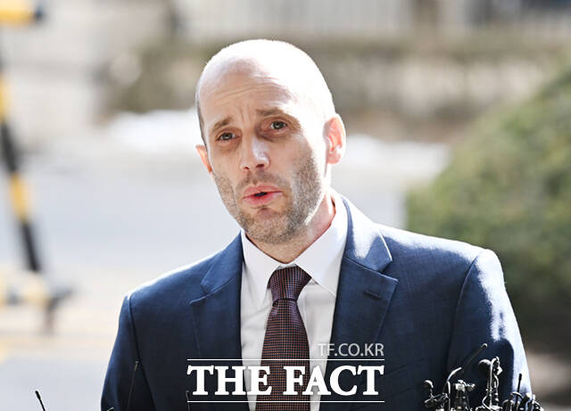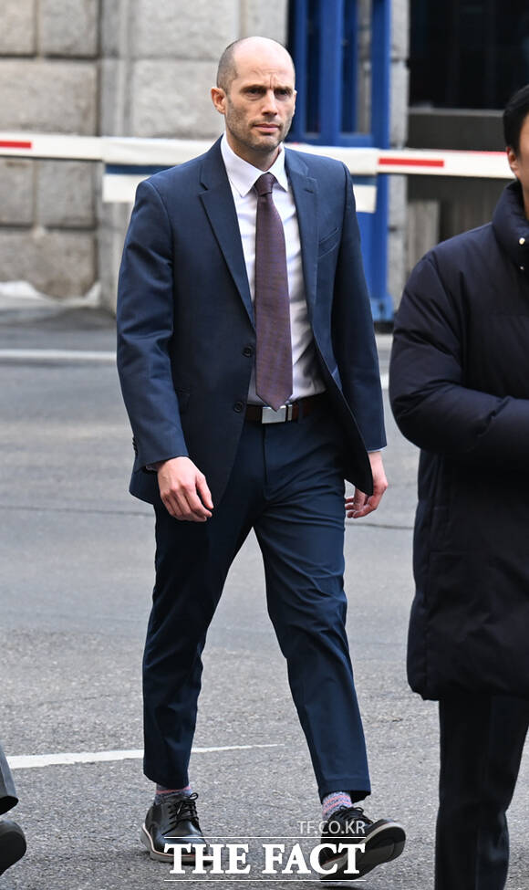 [더팩트ㅣ이새롬 기자] 쿠팡의 개인정보 유출 사건과 관련해 '셀프조사'로 증거인멸 의혹을 받는 해롤드 로저스 쿠팡 한국 임시 대표가 30일 오후 서울 종로구 서울경찰청에 피의자 신분으로 출석해 입장을 밝히고 있다.