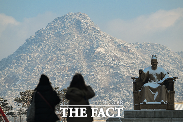 [더팩트ㅣ박헌우 기자] 밤사이 전국적으로 눈이 내린 2일 오전 서울 종로구 북악산에 눈이 쌓여 있다.