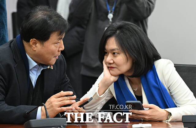[더팩트ㅣ국회=이새롬 기자] 더불어민주당 초선모임인 '더민초'가 2일 서울 여의도 국회 의원회관에서 조국혁신당 합당 관련 의견 수렴을 위한 간담회를 하고 있다.