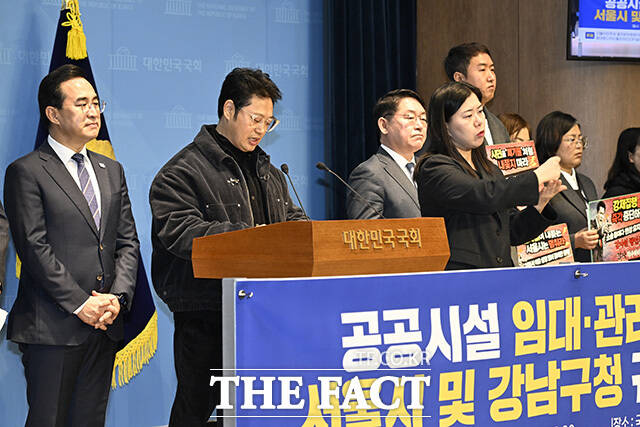 더불어민주당 을지로위원회와 서울시 공유재산 피해 소상공인 비상대책위원회 등은 이날 오전 국회에서 기자회견을 열고 2025년 국정감사에서 제기된 강남구청 및 서울시의 공공시설 임대 관리 부실과 행정권 남용 문제 등 지적했다.