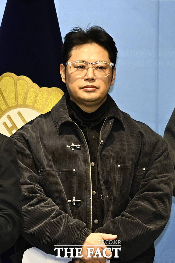 [더팩트 | 국회=송호영 기자] 스포츠 트레이너 겸 방송인 양치승 씨가 2일 오전 서울 여의도 국회에서 열린 '공공시설 임대·관리 부당 행정 서울시 및 강남구청 규탄 기자회견'에서 발언하고 있다.