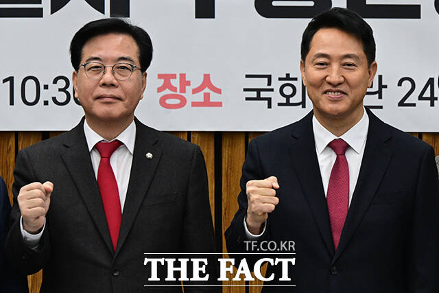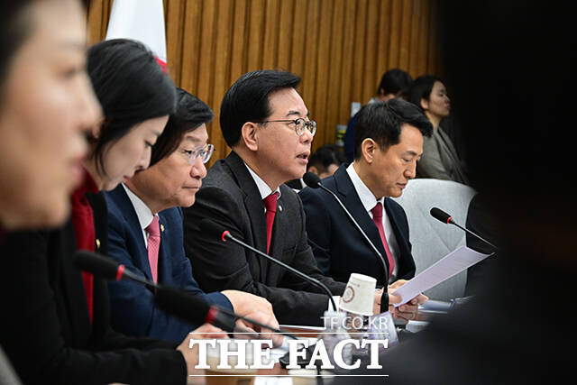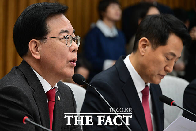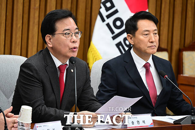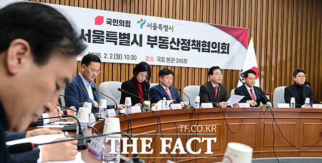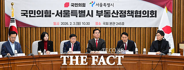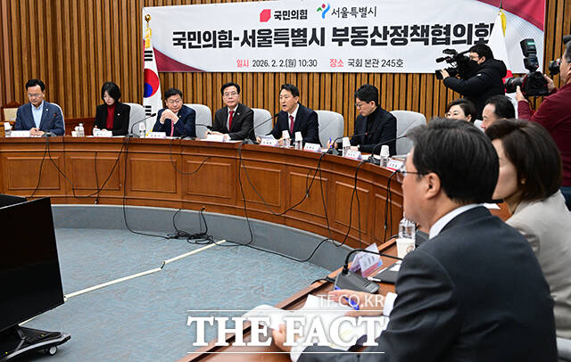 [더팩트ㅣ국회=남윤호 기자] 오세훈 서울시장이 2일 오전 서울 여의도 국회에서 열린 국민의힘-서울특별시 부동산정책협의회에 발언하고 있다.