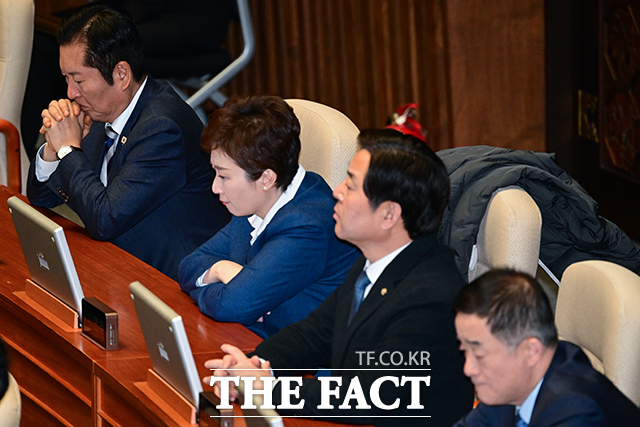 [더팩트ㅣ국회=남윤호 기자] 정청래 더불어민주당 대표(왼쪽)가 2일 오후 서울 여의도 국회에서 열린 제432회 국회(임시회) 개회식에 참석해 생각에 잠겨있다. 정 대표 오른쪽으로 이언주, 황명선, 강득구 최고위원. ilty012@tf.co.kr 사진영상기획부 photo@tf.co.kr