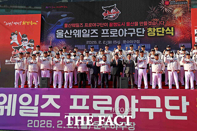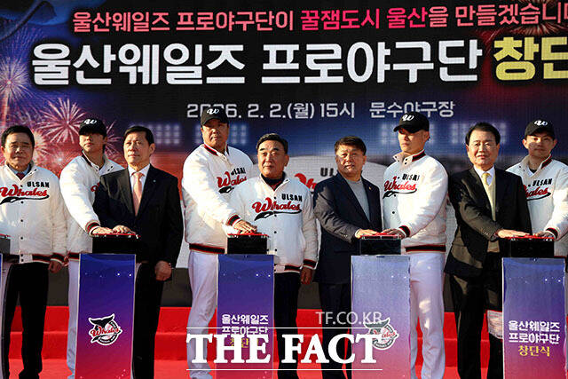 [더팩트ㅣ이효균 기자] 울산광역시(시장 김두겸)는 2일 울산 문수야구장에서 '울산 웨일즈' 공식 창단식을 개최했다.