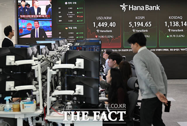 [더팩트ㅣ이새롬 기자] 전날 케빈 워시 전 연준 이사 지명 소식에 따른 '워시 쇼크' 여파로 5% 넘게 급락하며 5000선을 내줬던 코스피가 3일 반등하며 5100선을 회복한 가운데, 서울 중구 하나은행 본점 딜링룸에서 직원들이 분주한 모습을 보이고 있다.