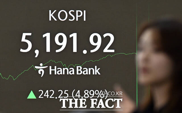 이날 코스피는 전날보다 3.34% 오른 5114.81에 출발하며 하루 만에 5000선을 재탈환했다. 이날 장초반 코스피는 급등세를 보이며 오전 9시 26분 매수호가 일시 효력정지(사이드카)가 발동됐다. 코스피 매수 사이드카가 발동된 것은 지난해 4월 10일 이후 약 10개월 만이다.