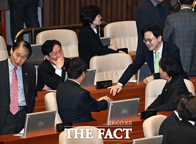 [더팩트 | 국회=배정한 기자] 김정관 산업통상부 장관이 3일 오전 서울 여의도 국회에서 열린 제432회 국회(임시회) 제2차 본회의에 참석하고 있다.