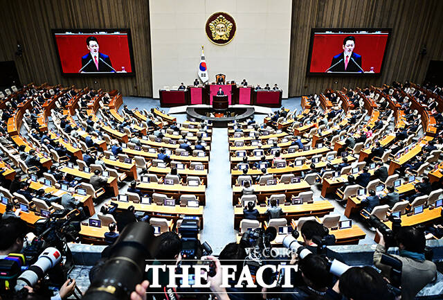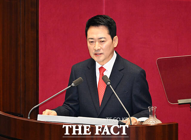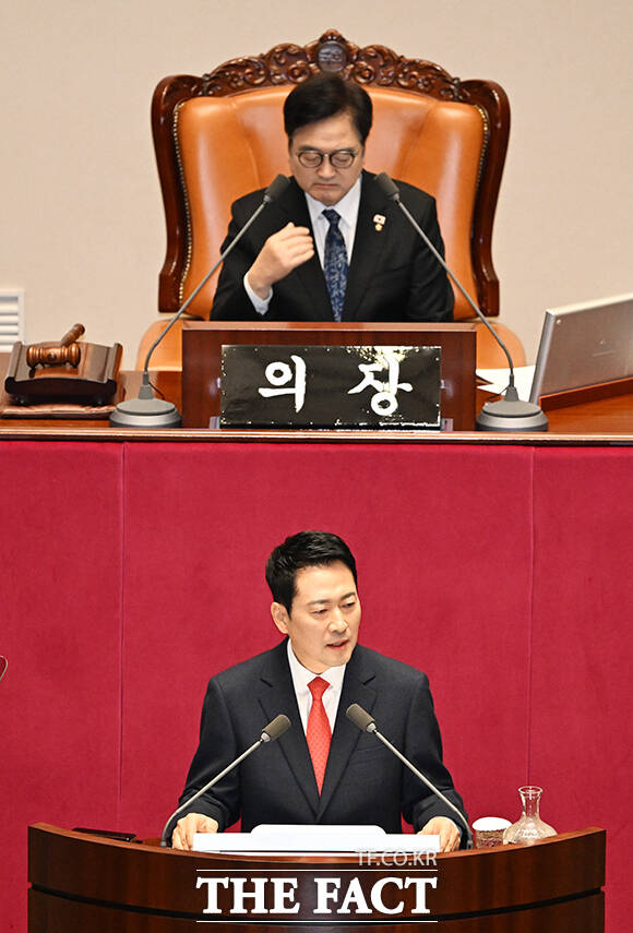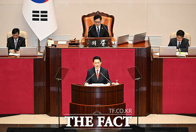 [더팩트ㅣ국회=배정한 기자] 장동혁 국민의힘 대표가 4일 오전 서울 여의도 국회에서 열린 제432회 국회(임시회) 제3차 본회의에 참석해 국정에 관한 교섭단체 대표 연설을 하고 있다.