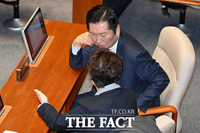 [더팩트ㅣ국회=남용희 기자] 정청래 더불어민주당 대표와 이언주 의원이 4일 오전 서울 여의도 국회에서 열린 제432회 국회(임시회) 제3차 본회의에서 대화를 나누고 있다.