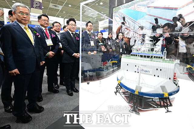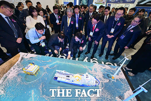 [더팩트ㅣ남윤호 기자] '코리아 스마트그리드 엑스포 2026'과 '일렉스 코리아 2026'가 서울 강남구 코엑스에서 동시 개막한 4일 오전 송종민 대한전선 대표이사, 김동철 한국전력공사 사장, 이호현 기후에너지환경부 제2차관, 우태희 효성중공업 대표이사, 윤병태 나주시장 등이 대한전선 부스에서 해저케이블을 살펴보고 있다.