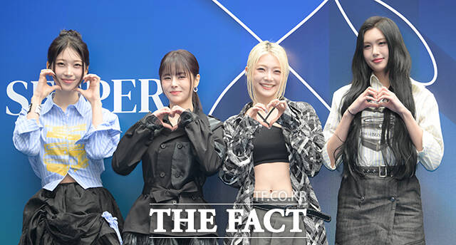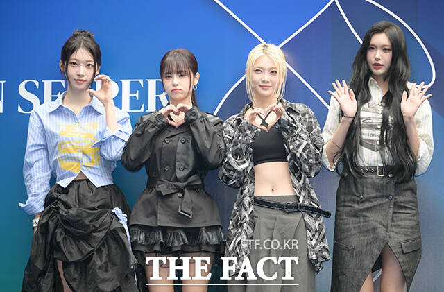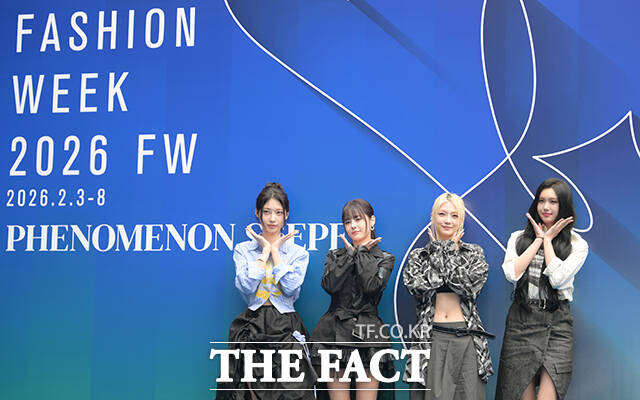 [더팩트ㅣ박헌우 기자] 에버글로우 시현과 이유, 온다, 아샤(왼쪽부터)가 4일 오후 서울 중구 동대문디자인플라자(DDP)에서 열린 '2026 F/W 서울패션위크' 페노메논시퍼 포토월에 참석해 포즈를 취하고 있다.