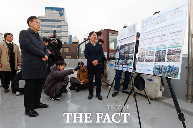 [더팩트ㅣ남윤호 기자] 김윤덕 국토교통부 장관이 4일 오후 서울 강남구 한 빌딩에서 1.29 대책 관련 주택 사업지인 서울의료원 남측 부지를 현장 방문해 LH관계자의 브리핑을 듣고 있다. 한국토지주택공사(LH)가 소유한 서울의료원 남측 부지에는 518가구가 공급될 예정이다.