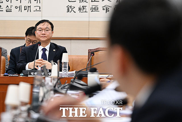 [더팩트ㅣ국회=남용희 기자] 박영재 신임 법원행정처장이 4일 오후 서울 여의도 국회에서 열린 국회 법제사법위원회 전체회의에서 의원 질의에 답하고 있다.