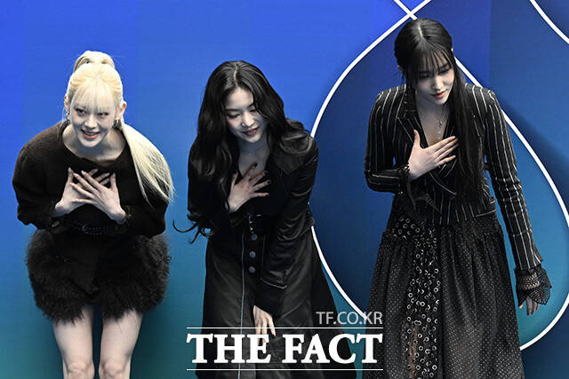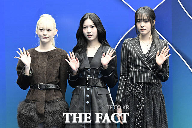 [더팩트 | 송호영 기자] 그룹 스테이씨의 세은과 아이사, 윤(왼쪽부터)이 4일 오후 서울 중구 동대문디자인플라자(DDP)에서 열린 2026 F/W 서울패션위크 곽현주컬렉션 포토월에 참석해 포즈를 취하고 있다.