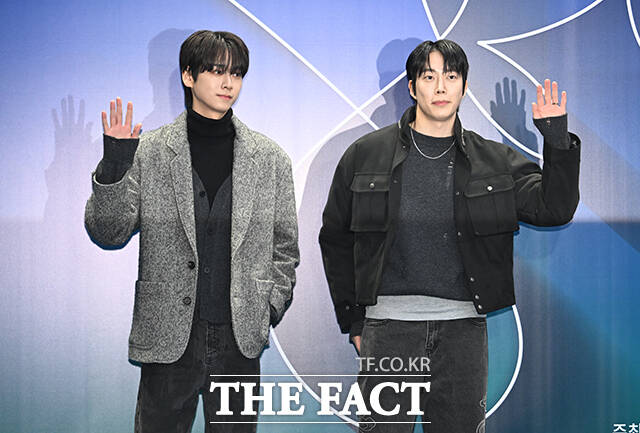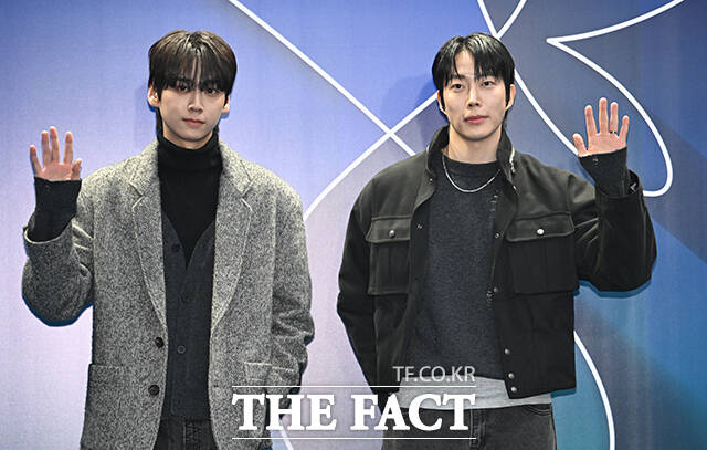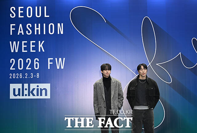 [더팩트ㅣ박헌우 기자] 인플루언서 신민규(왼쪽)와 정원규가 4일 오후 서울 중구 동대문디자인플라자(DDP)에서 열린 '2026 F/W 서울패션위크' 얼킨 포토월에 참석해 블루카펫을 밟고 있다.
