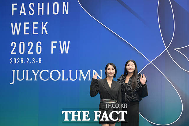 [더팩트ㅣ박헌우 기자] 통역사 이윤진(왼쪽)과 자녀 이소을이 5일 오후 서울 중구 동대문디자인플라자(DDP)에서 열린 2026 F/W 서울패션위크 줄라이칼럼 포토월에 참석해 블루카펫을 밟고 있다.