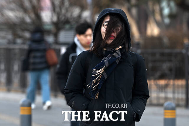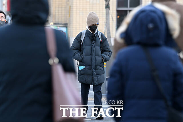 [더팩트ㅣ서예원 기자] 밤부터 기온이 큰 폭으로 떨어지며 전국적으로 다시 추위가 이어진 6일 오전 서울 종로구 광화문네거리에서 두꺼운 옷을 입은 시민들이 출근길 발걸음을 재촉하고 있다.