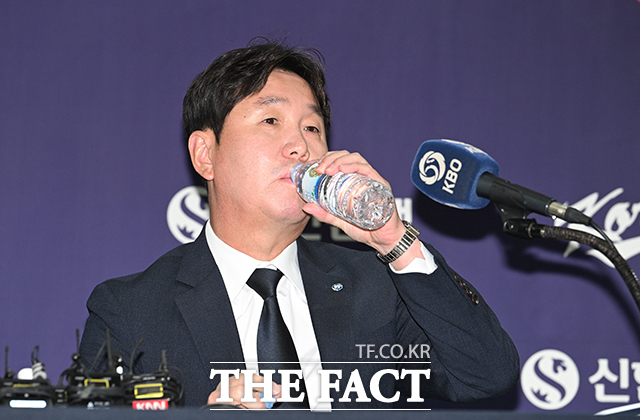 [더팩트ㅣ박헌우 기자] 류지현 월드베이스볼클래식(WBC) 대표팀 감독이 6일 오전 서울 중구 한국프레스센터에서 열린 2026 WBC 대표팀 기자회견에 참석해 목을 축이고 있다.cjg05023@tf.co.kr사진영상기획부 photo@tf.co.kr