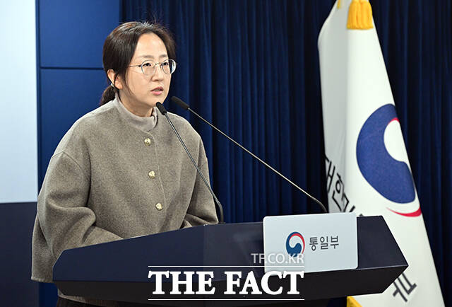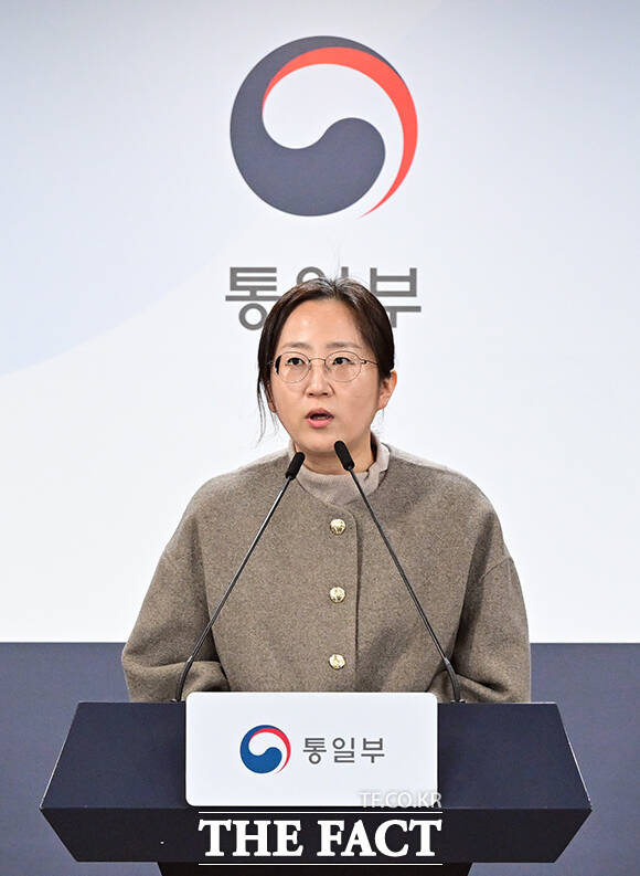 [더팩트ㅣ임영무 기자] 장윤정 통일부 부대변인이 6일 오전 서울 종로구 정부서울청사에서 현안 관련 정례브리핑을 하고 있다.
