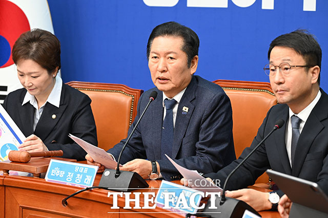 [더팩트ㅣ국회=남용희 기자] 정청래 더불어민주당 대표가 6일 오전 서울 여의도 국회에서 열린 최고위원회의에서 발언을 하고 있다.