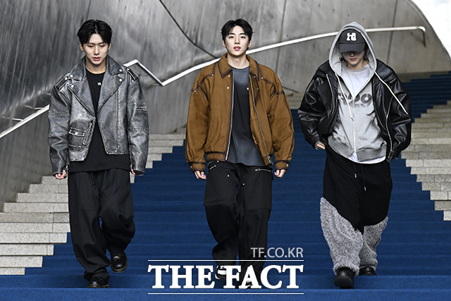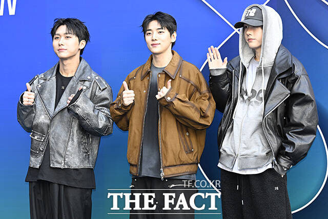 [더팩트 | 송호영 기자] 그룹 DKZ의 주원과 재찬, 세현(왼쪽부터)이 6일 오전 서울 중구 동대문디자인플라자(DDP)에서 열린 '2026 F/W 서울패션위크' 홀리넘버세븐 포토월에 참석해 포즈를 취하고 있다.