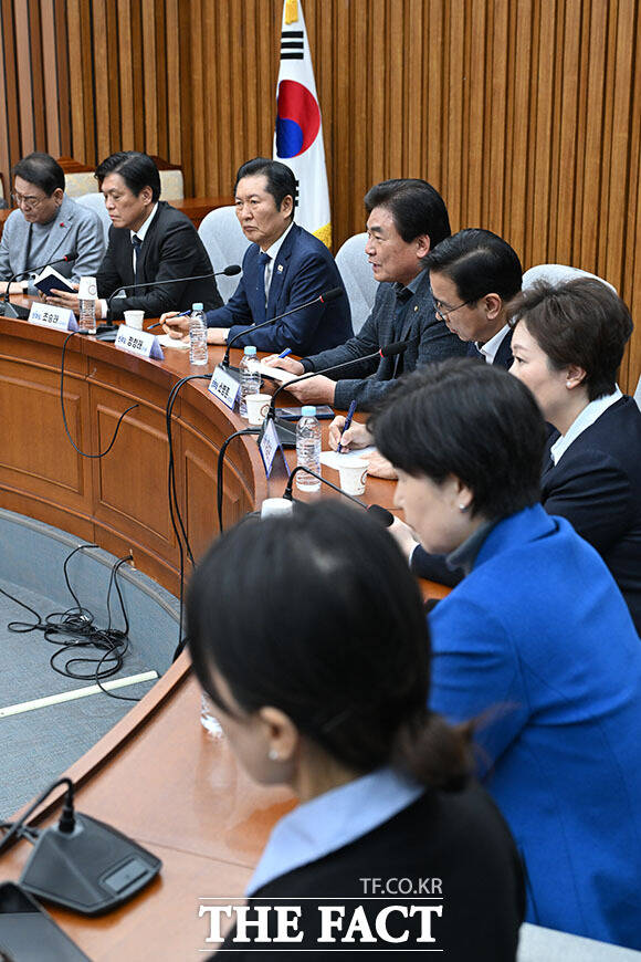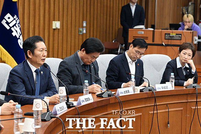 [더팩트ㅣ국회=남용희 기자] 정청래 더불어민주당 대표가 6일 오후 서울 여의도 국회에서 열린 3선의원 간담회에서 모두발언을 하고 있다.