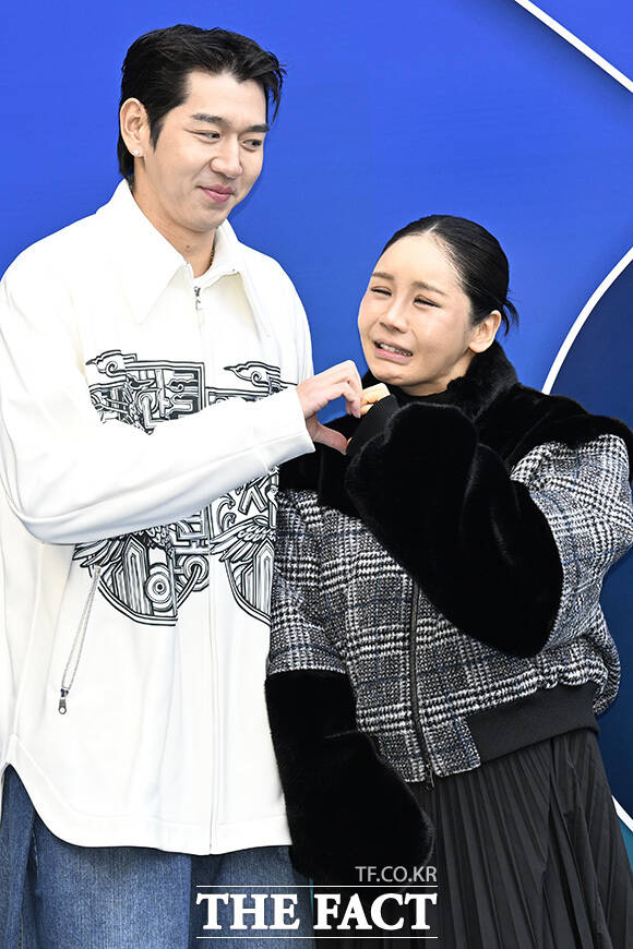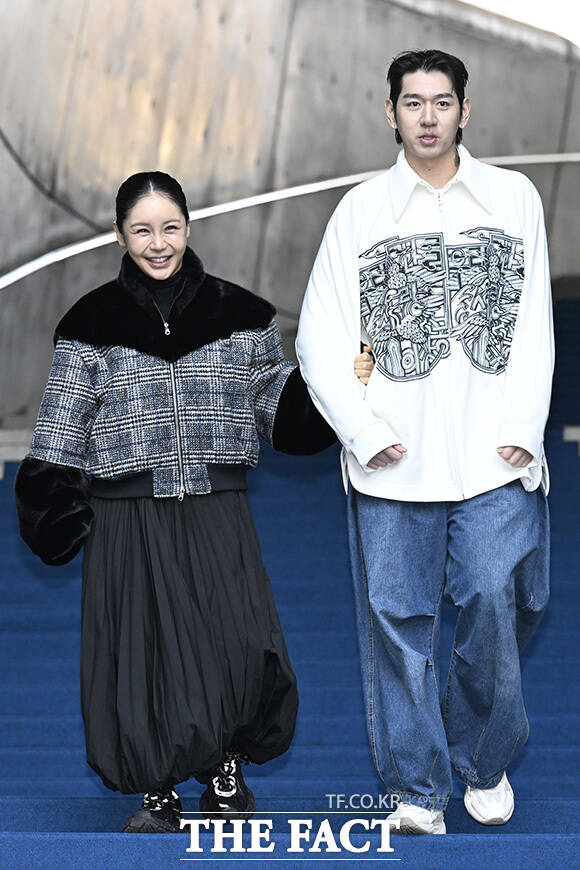 [더팩트 | 송호영 기자] 전 야구선수 이대은(왼쪽)과 가수 트루디 부부가 6일 오후 서울 중구 동대문디자인플라자(DDP)에서 열린 '2026 F/W 서울패션위크' 라이 포토월에 참석해 포즈를 취하고 있다.