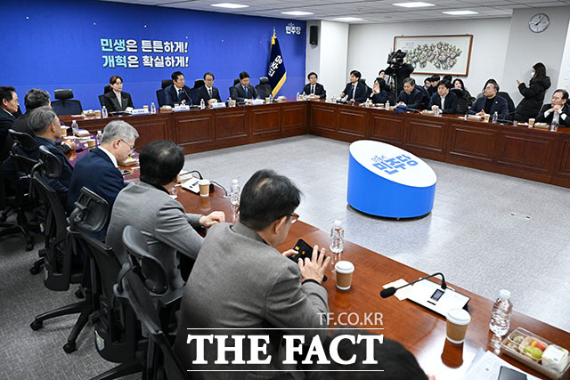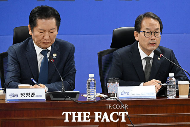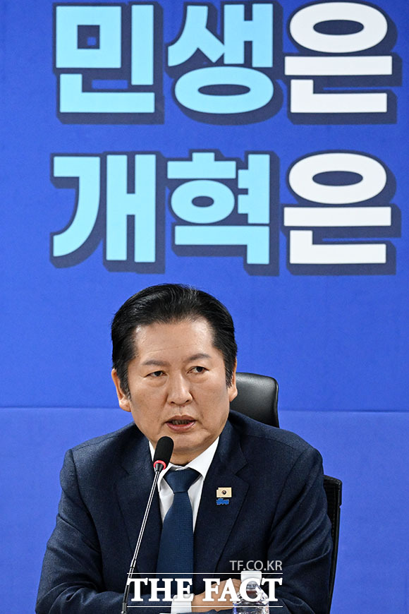 [더팩트ㅣ국회=남용희 기자] 정청래 더불어민주당 대표가 10일 오전 서울 여의도 국회 의원회관에서 열린 재선의원 간담회에서 모두발언을 하고 있다.