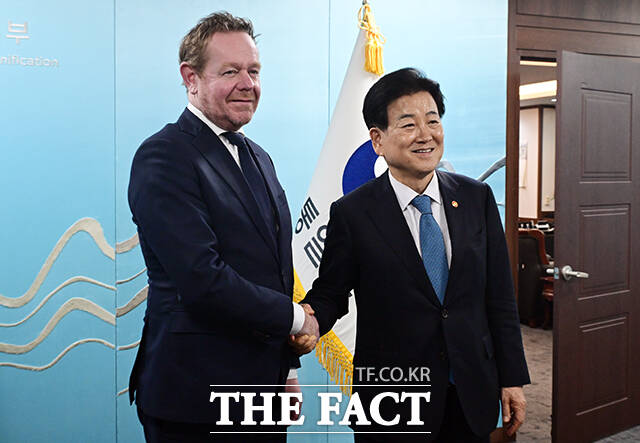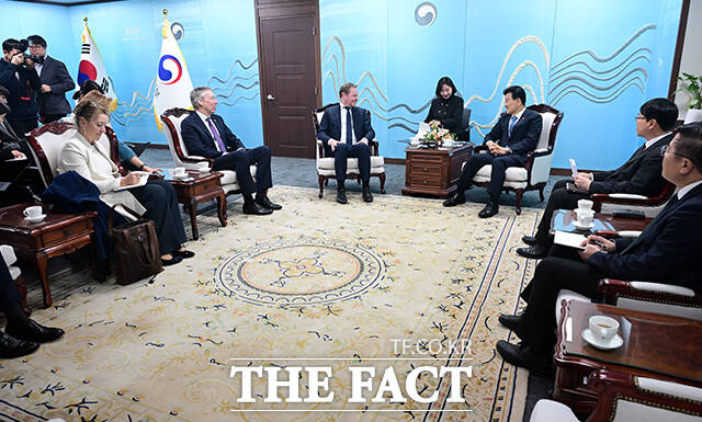 [더팩트ㅣ임영무 기자] 정동영 통일부 장관이 10일 오후 서울 종로구 정부서울청사에서 다비드 반 베일 네덜란드 외교장관과 면담을 갖고 있다.