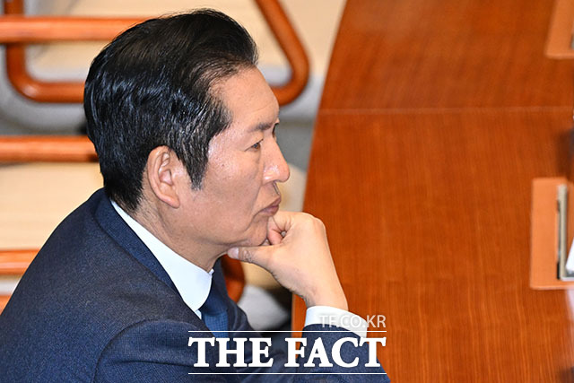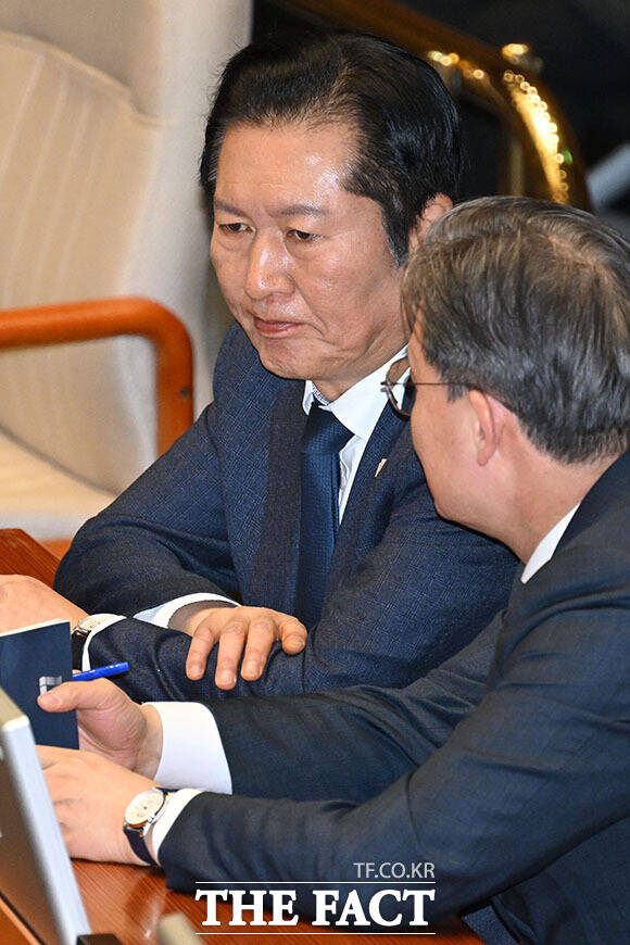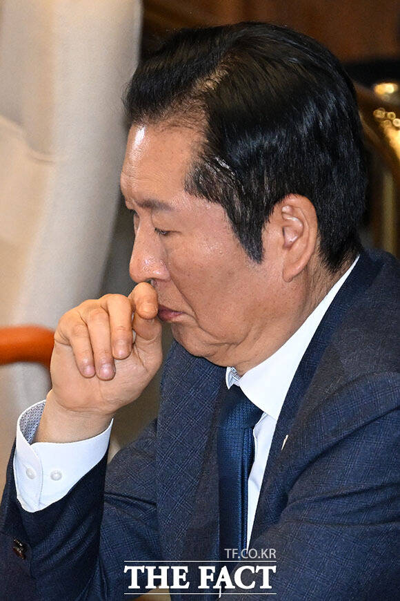 정청래 더불어민주당 대표가 10일 오후 서울 여의도 국회에서 열린 경제에 관한 대정부 질문에 참석해 생각에 잠겨있다. /국회=남용희 기자