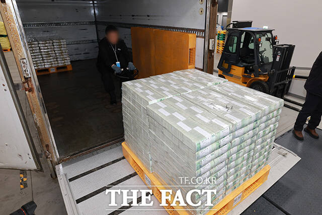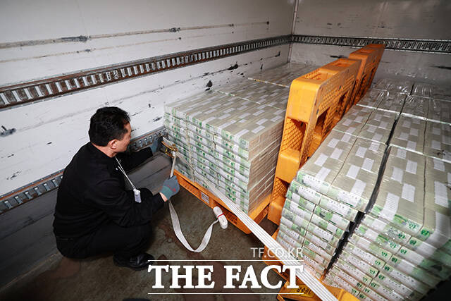 [더팩트 | 사진공동취재단] 민족 대명절 설을 앞둔 11일 오전 서울 중구 한국은행 본점에서 직원들이 시중은행으로 공급될 설 자금 방출 작업을 하고 있다.