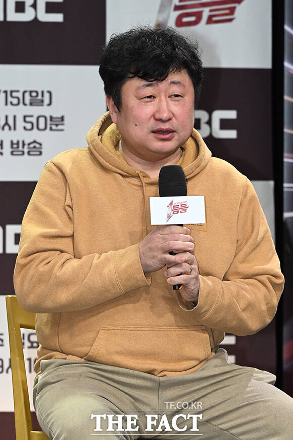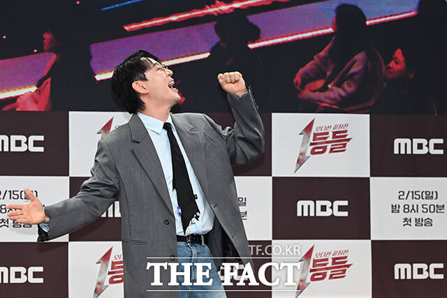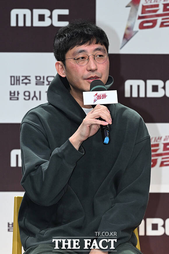 [더팩트 | 김성렬 인턴기자] 김명진 PD, 배우 이민정, 방송인 붐, 채현석 PD(왼쪽부터)가 11일 서울시 마포구 상암동 MBC 골든마우스홀에서 열린 새 예능 '1등들' 제작발표회에서 포즈를 취하고 있다.