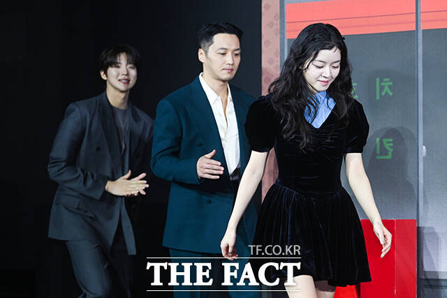 [더팩트ㅣ서예원 기자] 배우 변요한과 고아성, 문상민(왼쪽부터)이 12일 오전 서울 강남구 메가박스 코엑스에서 열린 넷플릭스 ‘파반느’ 제작보고회에 참석해 포즈를 취하고 있다.