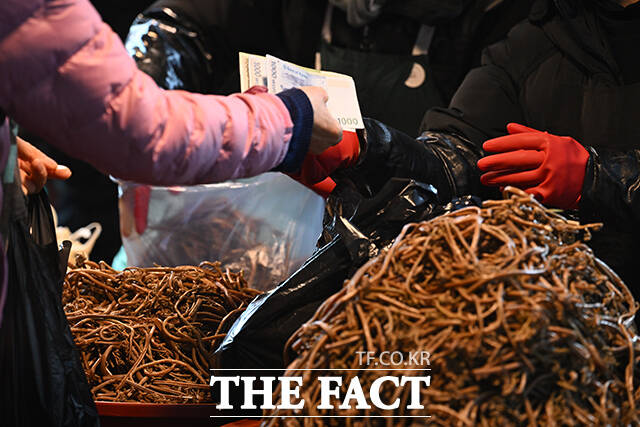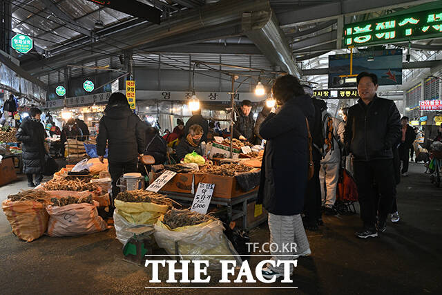 [더팩트 | 김성렬 인턴기자] 설 명절 연휴를 하루 앞둔 13일 오전 서울시 동대문구 경동시장에 장을 보기 위해 온 시민들로 붐비고 있다.