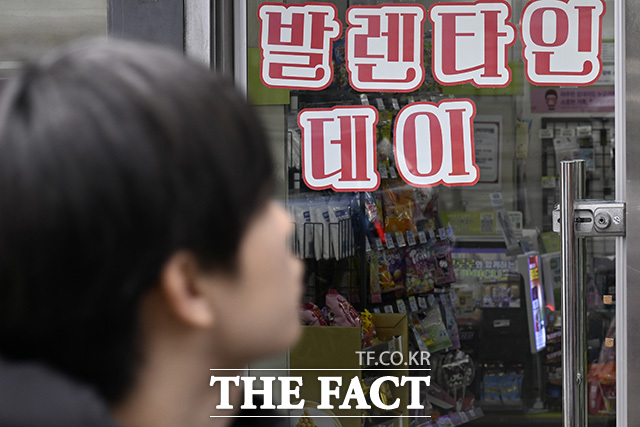 [더팩트 | 송호영 기자] 밸런타인데이이자 설 연휴의 첫날인 14일 오후 서울 중구 명동의 한 상점에 기념일을 홍보하는 문구가 붙어 있다.밸런타인데이는 그리스도교의 성인 발렌티노의 축일에서 유래한 기념일이다.한국에서는 여자가 남자에게 초콜릿을 선물하는 날로 알려져 있으며, 흔히 '발렌타인데이'로 불리지만 표준어는 '밸런타인데이'이다.hysong@tf.co.kr사진영상기획부 photo@tf.co.kr