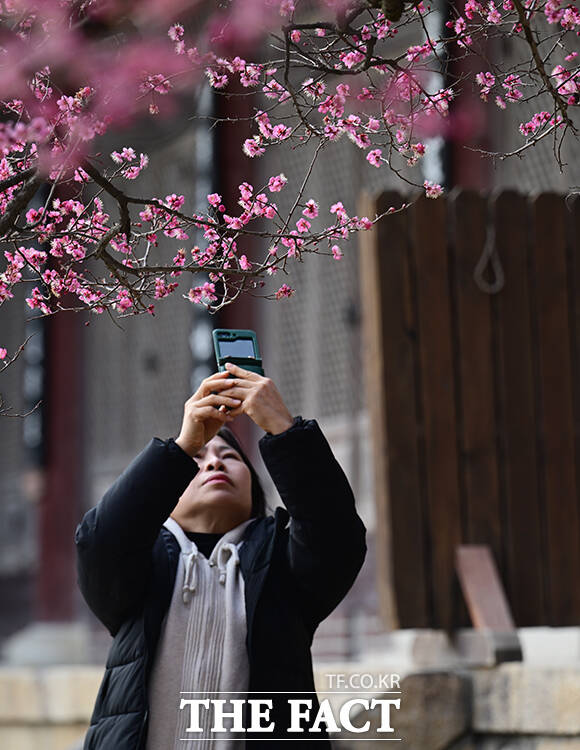 '활짝 핀 홍매화'…봄 기분 만끽하는 시민들 [TF사진관]