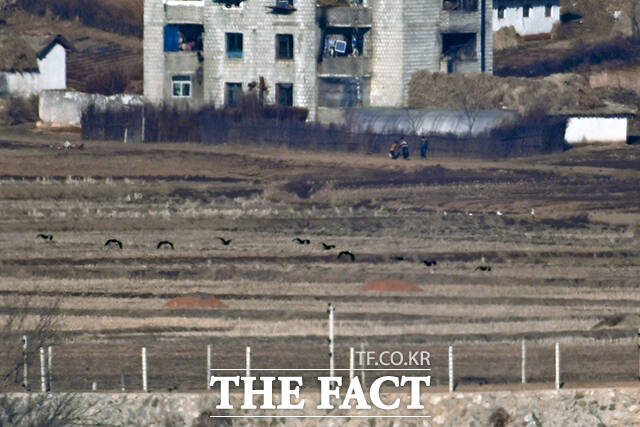 [더팩트ㅣ파주=남윤호 기자] 민족 대명절 설을 맞은 17일 오전 경기 파주시 오두산 통일전망대에서 바라본 북한 개풍군 일대에서 알록달록한 옷을 입은 북한 주민들의 모습이 보이고 있다.