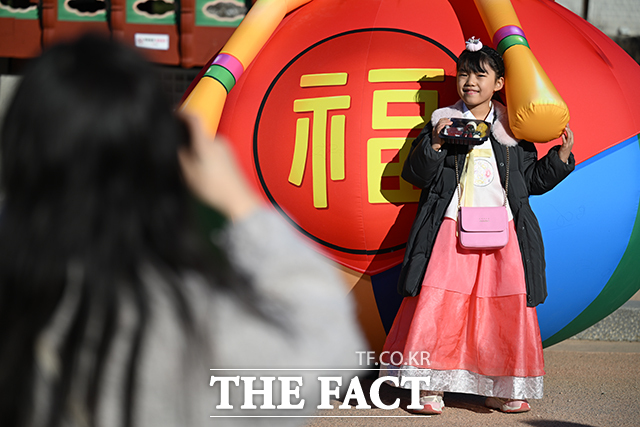 [더팩트ㅣ남윤호 기자] 설날인 17일 오후 서울 중구 남산한옥마을에서 열린 '2026 남산골 설축제'를 찾은 시민들이 '복'과 함께 기념사진을 찍고 있다.
