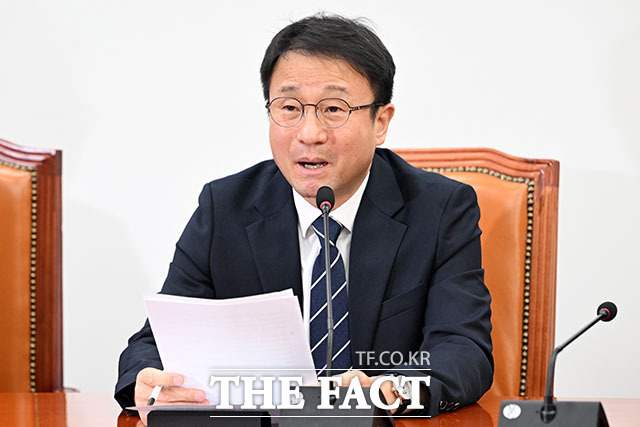 [더팩트ㅣ국회=남용희 기자] 한병도 더불어민주당 원내대표가 19일 오전 서울 여의도 국회에서 열린 정책조정회의에서 모두발언을 하고 있다.