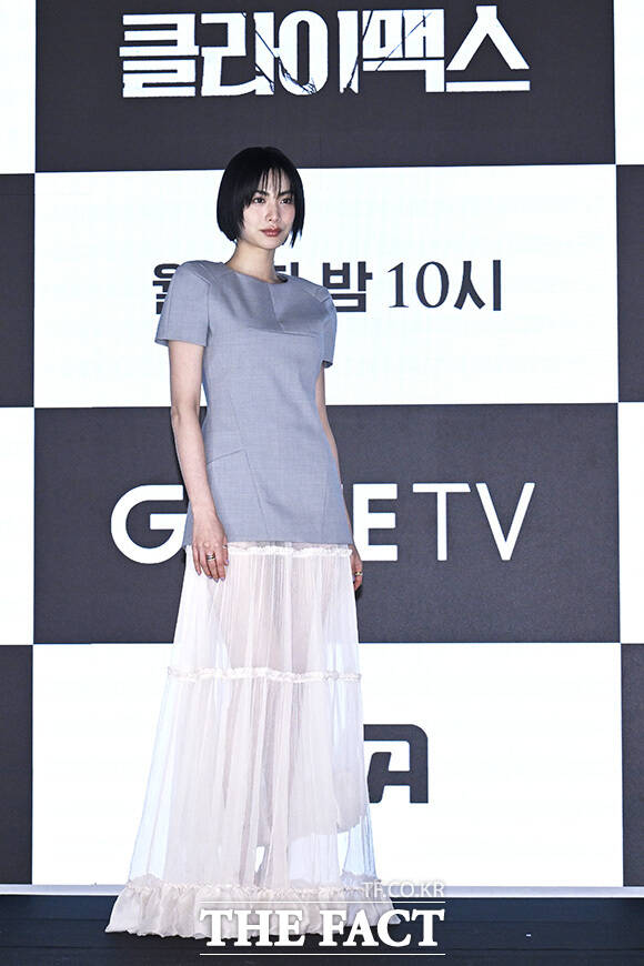 [더팩트 | 송호영 기자] 배우 주지훈과 하지원, 이지원 감독, 배우 오정세, 나나(왼쪽부터)가 10일 오후 서울 구로구 디큐브시티 더세인트 그랜드볼룸에서 열린 ENA 월화드라마 '클라이맥스' 제작발표회에 참석해 포즈를 취하고 있다.