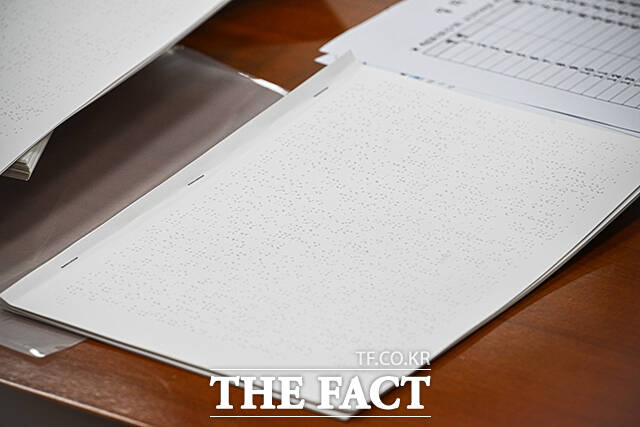 눈 대신 손끝으로, 하얀 종이 위에 새겨진 작은 점들을 따라 천천히 국정을 읽어 내려갑니다.