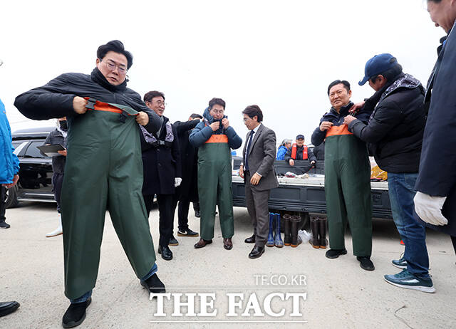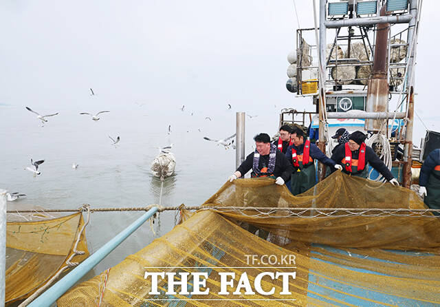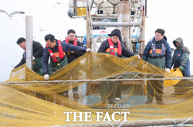 '민생은 현장에!'...새우잡이 조업 체험하는 정청래 대표와 박찬대 인천시장 후보 [TF사진관]
