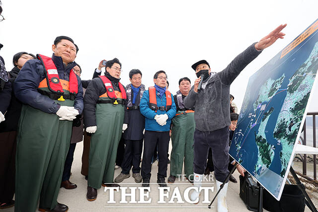 정 대표는 이날 박 의원과 함께 강화평화전망대를 찾아 망배단을 시찰한 뒤 교동대룡리시장을 방문해 지역 경제와 민생 상황을 점검했다. 이어 죽산포구로 이동해 새우잡이 조업 현장 체험을 진행하며 어업인들의 애로사항도 청취했다.