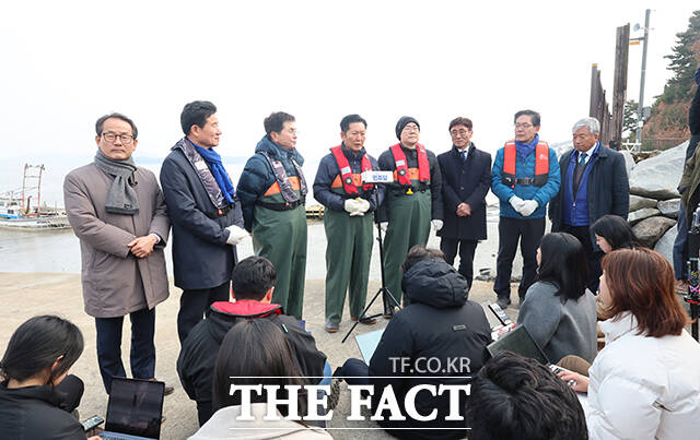 정 대표는 이날 박 의원과 함께 강화평화전망대를 찾아 망배단을 시찰한 뒤 교동대룡리시장을 방문해 상인들과 만나 지역 경제와 민생 상황을 점검했다. 이어 죽산포구로 이동해 새우잡이 조업 현장 체험을 진행하며 어업인들의 애로사항도 청취했다.
