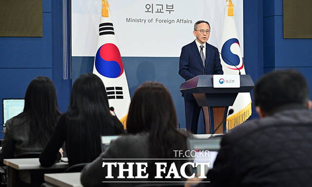 [더팩트ㅣ임영무 기자] 박일 외교부 대변인이 12일 오후 서울 종로구 외교부 청사에서 현안 관련 정례브리핑을 하고 있다.