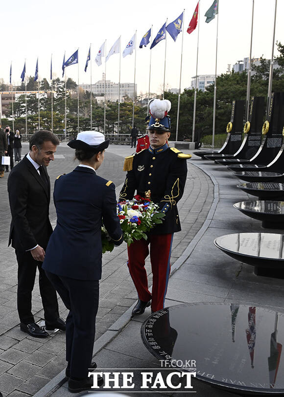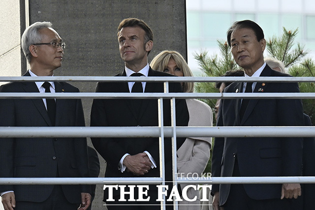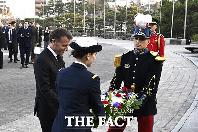 마크롱 대통령의 전용기는 이날 오후 5시 30분께 경기 성남시 서울공항에 착륙했다. 이후 마크롱 대통령은 첫 일정으로 전쟁기념관을 찾았다.