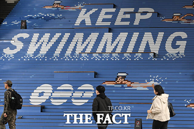 [더팩트 | 김성렬 기자] 6일 오전 서울 용산구 용산역 광장 계단에 그룹 방탄소년단(BTS)의 신곡 'SWIM' 홍보 구조물이 설치돼 있다.
