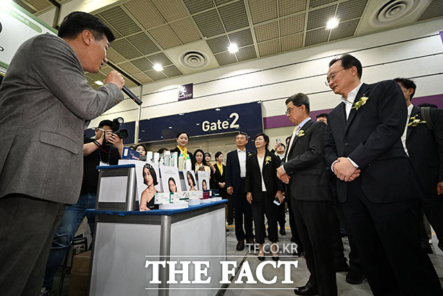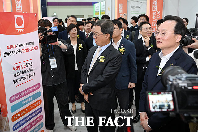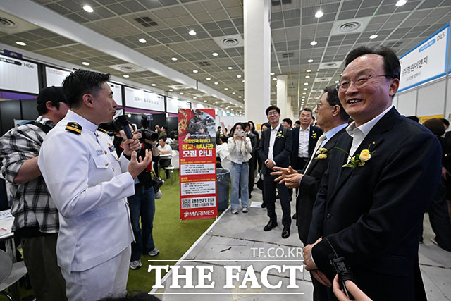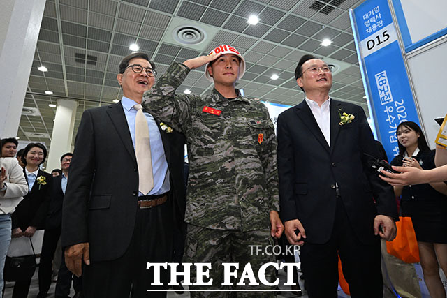 [더팩트ㅣ서예원 기자] 이달곤 동반성장위원회 위원장(왼쪽)과 이환주 KB국민은행장이 27일 오전 서울 강남구 삼성동 코엑스에서 열린 ‘2026 1차 KB굿잡 우수기업 취업박람회’에서 군 간부 채용관을 둘러보고 있다.
