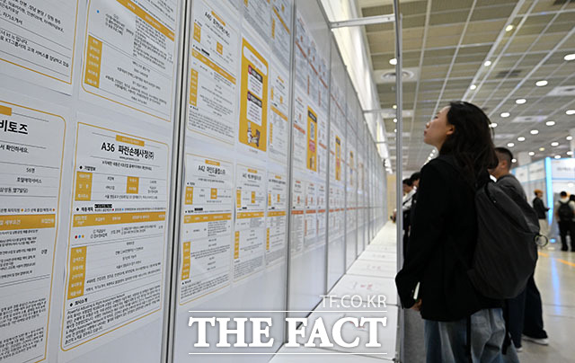 [더팩트ㅣ서예원 기자]‘2026 1차 KB굿잡 우수기업 취업박람회’가 27일 오전 서울 강남구 삼성동 코엑스에서 열린 가운데 구직자들이 채용 공고 게시대를 살펴보고 있다.