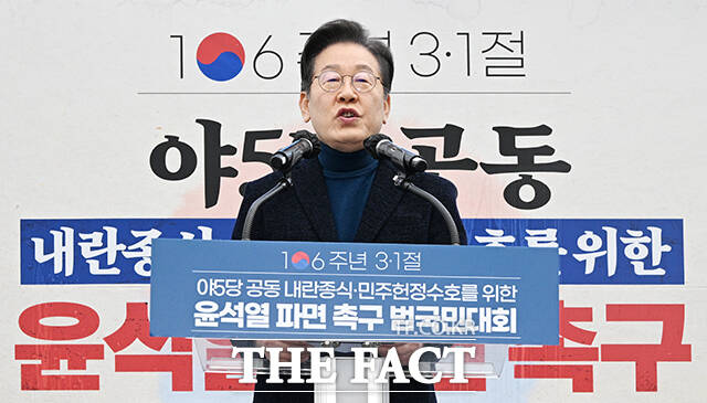 [더팩트ㅣ국회=김세정 기자] 이재명 더불어민주당 대표가 여론조사에서 여권 잠룡들을 압도적으로 따돌렸다. 조기 대선 가능성이 커지는 상황에서 대세론을 굳혀가는 분위기다.